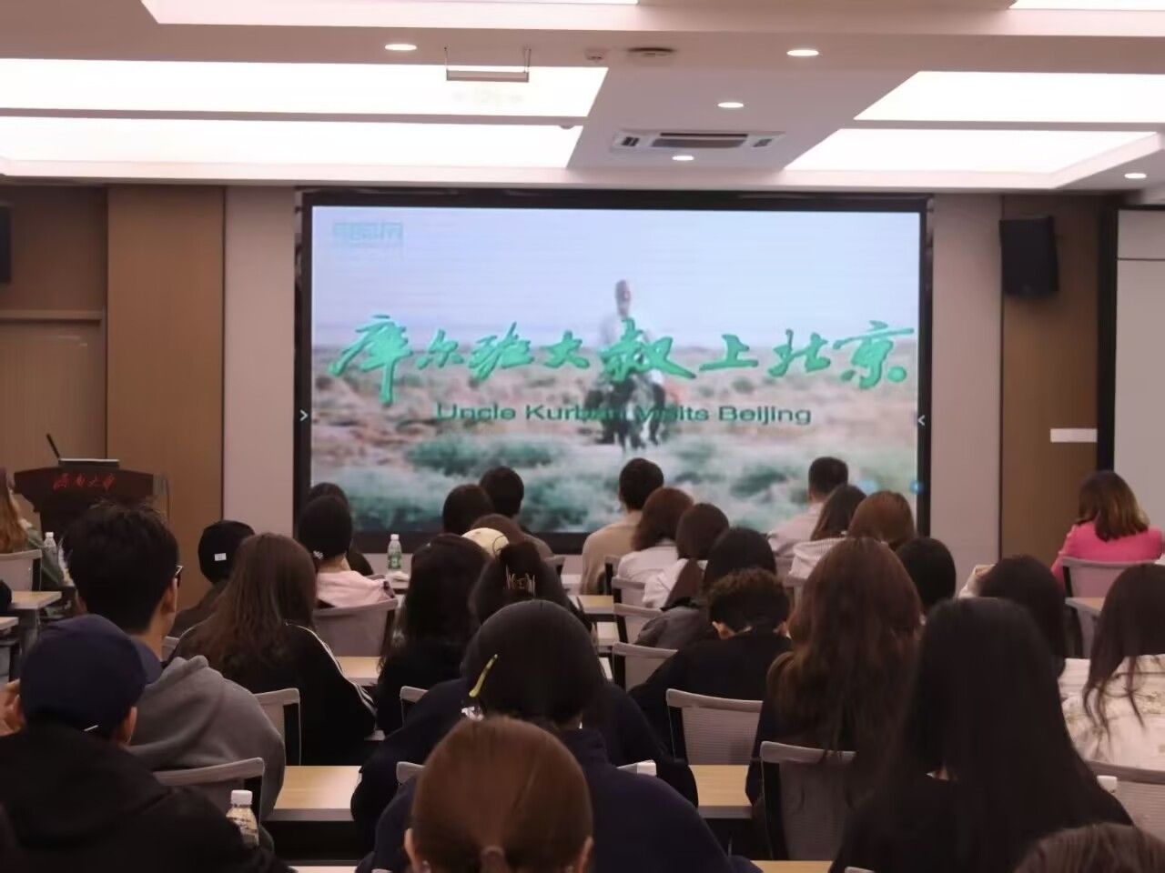 观影现场庄重肃穆,师生们全神贯注,深深沉浸在影片所呈现的历史情境与情感共鸣中。库尔班大叔对党真挚朴素的情感、对幸福生活的执着追求,以及各族干部群众之间亲如一家的深厚情谊,深深打动了每一位观众。大家在光影流转间触摸历史的脉搏,在情感共鸣中感悟信仰的力量,共同经历了一次深刻的思想洗礼与精神淬炼。这不仅仅是一次观影,更是一堂跨越时空、直抵心灵的生动思政大课,让师生在光影艺术中重温历史,在情感激荡中升华认识,在思想碰撞中坚定信念。