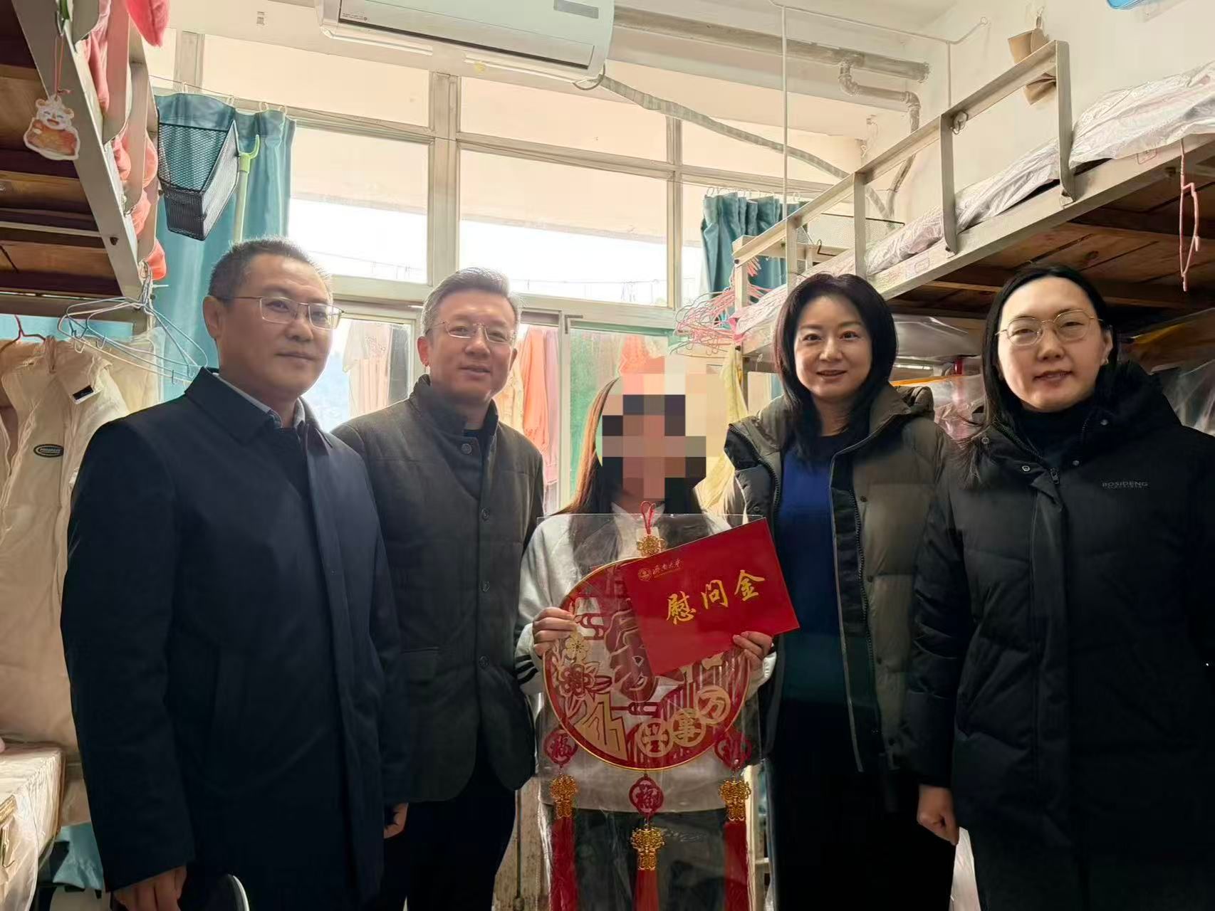 学生工作处处长胡春毅与相关学院副书记、辅导员一同走访慰问了寒假留济的少数民族同学。老师们与同学们面对面亲切交流,详细询问他们假期的学习计划、生活起居、出行安全及思乡之情,细致了解其在济生活保障落实情况与日常实际需求,反复叮嘱同学们严守安全规定,科学规划作息,利用假期夯实专业基础、提升综合素养。学校为同学们送上慰问物品与新春祝福,让远离家乡的同学们在泉城感受到家一般的温暖,确保同学们度过一个平安、充实的寒假。
